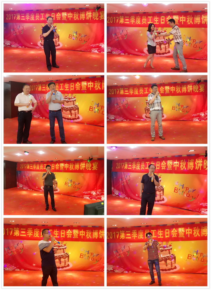 金秋九月,它不僅給我們帶來了涼涼的秋意,還為我們迎來了中國傳統節日——中秋佳節。2017年9月29日晚,在公司行政人事部的統一部署下,“2017第三季度員工生日會暨中秋博餅晚宴”的聯歡活動在公司七樓多功能廳開展。同時,次日人力行政中心還精心組織開展集體活動。
